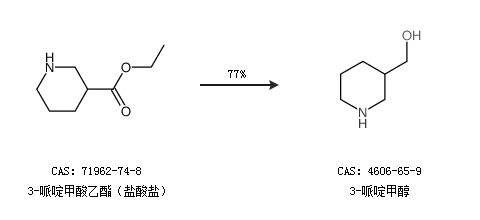 1.通過3-哌啶甲酸乙酯(鹽酸鹽)合成3-哌啶甲醇,收率約77%;