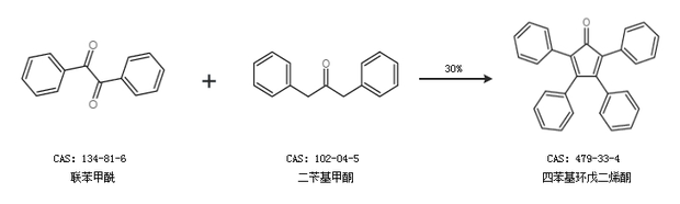 1.通過聯(lián)苯甲酰和二芐基甲酮合成四苯基環(huán)戊二烯酮,收率約30%;