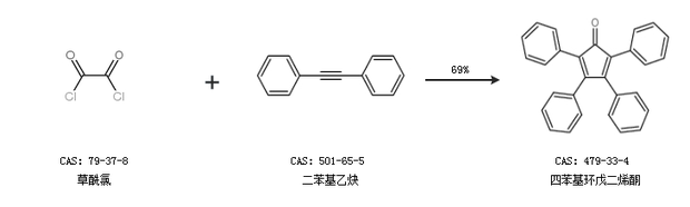 2.通過草酰氯和二苯基乙炔合成四苯基環(huán)戊二烯酮,收率約69%;
