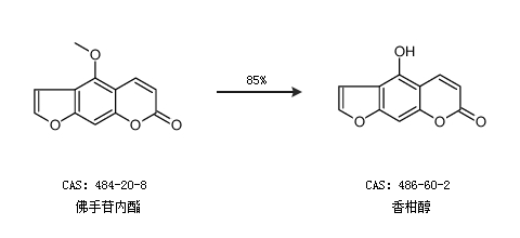 1.通過(guò)佛手苷內(nèi)酯合成香柑醇,收率約85%;