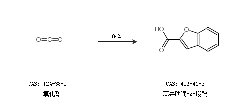 2.通過二氧化碳合成苯并呋喃-2-羧酸,收率約84%;