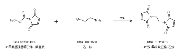 1.通過N-甲氧基羰基順丁烯二酰亞胺和乙二胺合成1,2-雙(馬來酰亞胺)乙烷,收率約62%;