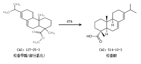 1.通過松香甲酯(部分氫化)合成松香酸,收率約87%;