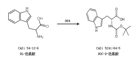2.通過(guò)DL-色氨酸合成BOC-D-色氨酸,收率約86%;