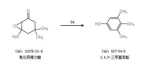 2.通過氧化異佛爾酮合成3,4,5-三甲基苯酚,收率約5%;