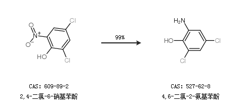 1.通過2,4-二氯-6-硝基苯酚合成4,6-二氯-2-氨基苯酚,收率約99%;