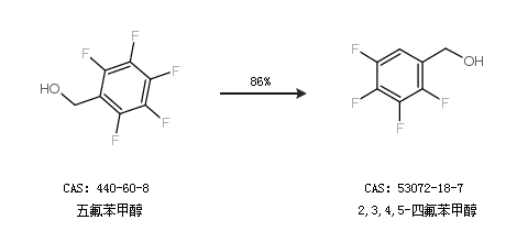 1.通過(guò)五氟苯甲醇合成2,3,4,5-四氟苯甲醇,收率約86%;