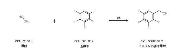 2.通過(guò)甲醇和五氟苯合成2,3,4,5-四氟苯甲醇,收率約8%;