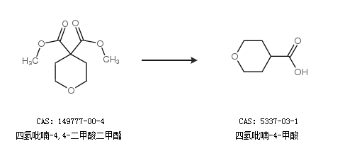 2.通過四氫吡喃-4,4-二甲酸二甲酯合成四氫吡喃-4-甲酸
