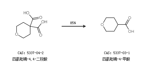 1.通過四氫吡喃-4,4-二羧酸合成四氫吡喃-4-甲酸,收率約85%;