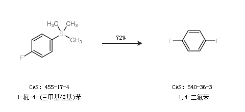 1.通過1-氟-4-(三甲基硅基)苯合成1,4-二氟苯,收率約72%;