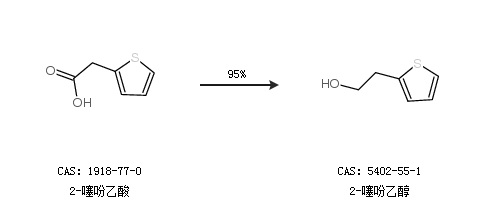 1.通過2-噻吩乙酸合成2-噻吩乙醇,收率約95%;
