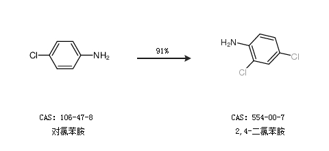 1.通過對(duì)氯苯胺合成2,4-二氯苯胺,收率約91%;