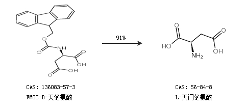 2.通過(guò)FMOC-D-天冬氨酸合成L-天門(mén)冬氨酸,收率約91%;