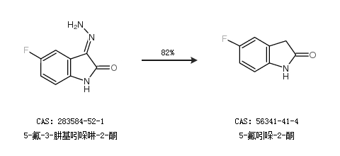 2.通過(guò)5-氟-3-肼基吲哚啉-2-酮合成5-氟吲哚-2-酮,收率約82%;