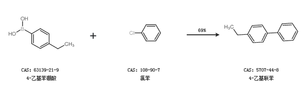 2.通過4-乙基苯硼酸和氯苯合成4-乙基聯(lián)苯,收率約69%;
