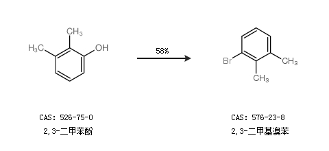 1.通過2,3-二甲苯酚合成2,3-二甲基溴苯,收率約58%;
