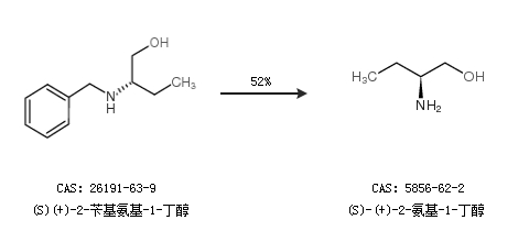 2.通過(S)(+)-2-芐基氨基-1-丁醇合成(S)-(+)-2-氨基-1-丁醇,收率約52%;
