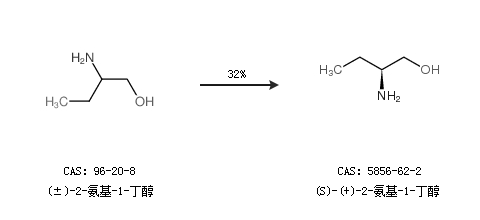 1.通過(±)-2-氨基-1-丁醇合成(S)-(+)-2-氨基-1-丁醇,收率約32%;