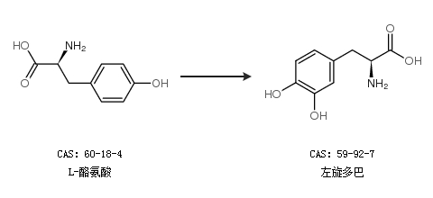 1.通過L-酪氨酸合成左旋多巴