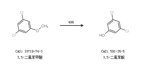 2.通過3,5-二氯苯甲醚合成3,5-二氯苯酚,收率約49%;
