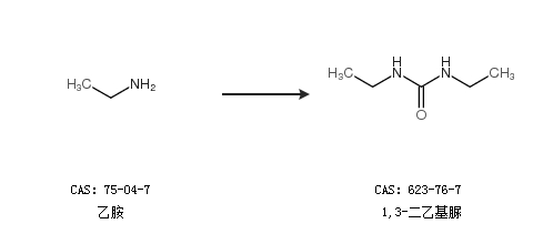 1.通過乙胺合成1,3-二乙基脲,收率約97%;