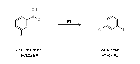 1.通過3-氯苯硼酸合成1-氯-3-碘苯,收率約85%;