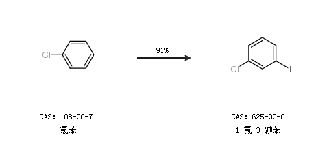 2.通過氯苯合成1-氯-3-碘苯,收率約91%;