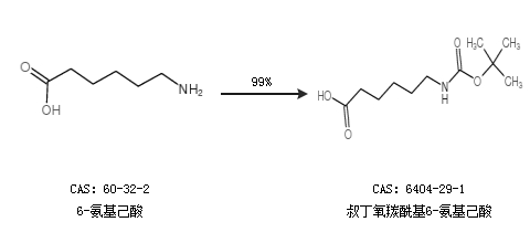 1.通過(guò)6-氨基己酸合成叔丁氧羰?;?-氨基己酸,收率約99%;