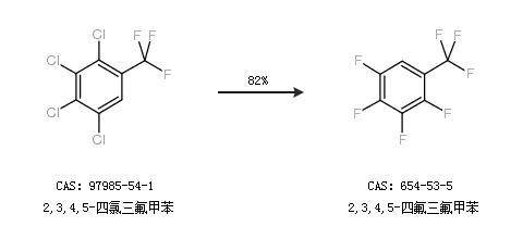 1.通過2,3,4,5-四氯三氟甲苯合成2,3,4,5-四氟三氟甲苯,收率約83%;