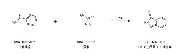 2.通過(guò)2-肼吡啶和尿素合成1,2,4-三偶氮[4,3]吡啶酮,收率約57%;