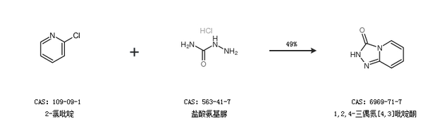 1.通過(guò)2-氯吡啶和鹽酸氨基脲合成1,2,4-三偶氮[4,3]吡啶酮,收率約49%;