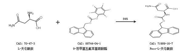 2.通過L-天冬酰胺和9-芴甲基五氟苯基碳酸酯合成Fmoc-L-天冬酰胺,收率約84%;