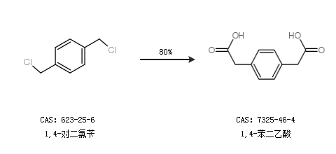 1.通過(guò)1,4-對(duì)二氯芐合成1,4-苯二乙酸,收率約80%;