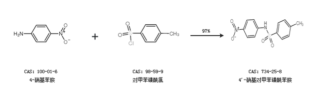 1.通過(guò)4-硝基苯胺和對(duì)甲苯磺酰氯合成4''-硝基對(duì)甲苯磺酰苯胺,收率約97%;