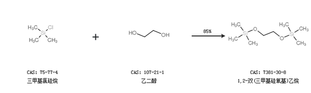1.通過三甲基氯硅烷和乙二醇合成1,2-雙(三甲基硅氧基)乙烷,收率約85%;