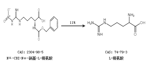 2.通過Nα-CBZ-Nω-硝基-L-精氨酸合成L-精氨酸,收率約11%;