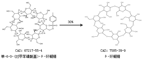 2.通過單-6-O-(對甲苯磺;)-β-環(huán)糊精合成β-環(huán)糊精,收率約30%;
