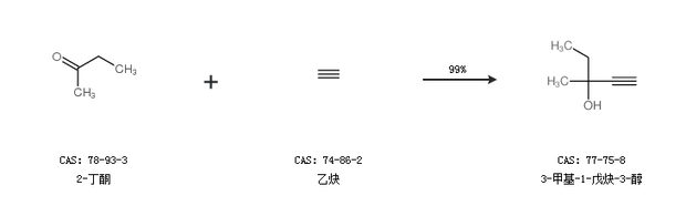 1.通過2-丁酮和乙炔合成3-甲基-1-戊炔-3-醇,收率約99%;