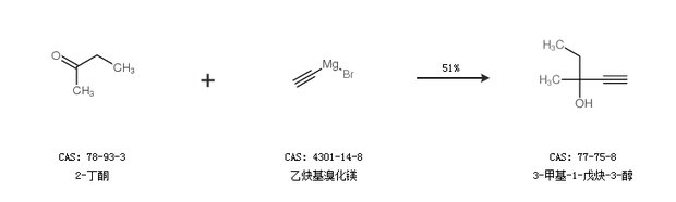 2.通過2-丁酮和乙炔基溴化鎂合成3-甲基-1-戊炔-3-醇,收率約51%;