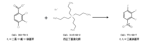 2.通過2,4-二氯-3-氟-1-硝基苯和四正丁基溴化膦合成2,3,4-三氟硝基苯