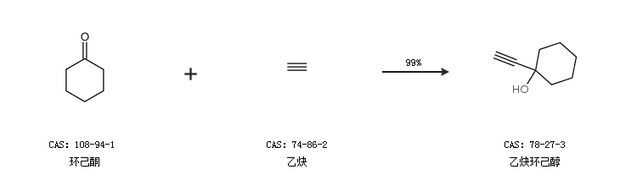 2.通過環(huán)己酮和乙炔合成乙炔環(huán)己醇,收率約99%;