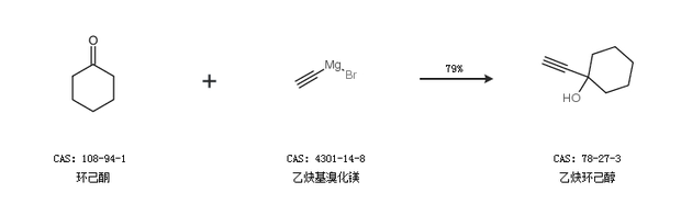 1.通過環(huán)己酮和乙炔基溴化鎂合成乙炔環(huán)己醇,收率約79%;
