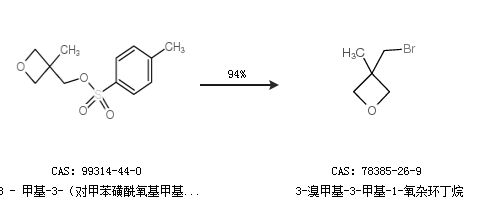 1.通過3 - 甲基-3-(對(duì)甲苯磺酰氧基甲基)環(huán)氧丙烷合成3-溴甲基-3-甲基-1-氧雜環(huán)丁烷,收率約94%;