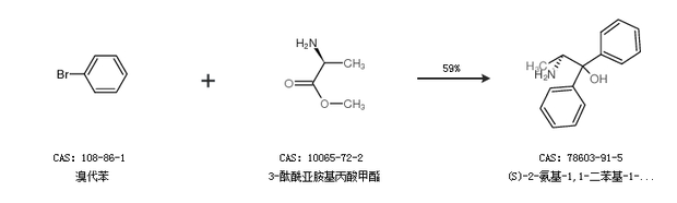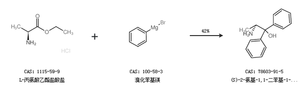 2.通過L-丙氨酸乙酯鹽酸鹽和溴化苯基鎂合成(S)-2-氨基-1,1-二苯基-1-丙醇,收率約42%;
