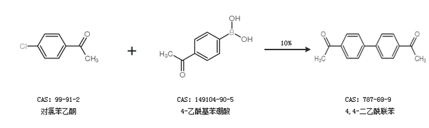 2.通過(guò)對(duì)氯苯乙酮和4-乙?;脚鹚岷铣?,4-二乙酰聯(lián)苯,收率約10%;