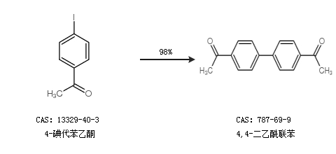 1.通過(guò)4-碘代苯乙酮合成4,4-二乙酰聯(lián)苯,收率約98%;