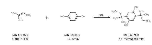 1.通過2-甲基-2-丁烯和1,4-苯二酚合成2,5-二叔戊基對(duì)苯二酚,收率約90%;