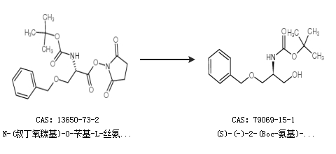 1.通過N-(叔丁氧羰基)-O-芐基-L-絲氨酸 N-琥珀酰亞胺酯合成(S)-(-)-2-(Boc-氨基)-3-芐氧基-1-丙醇
