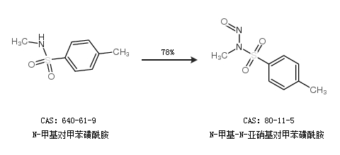 中文別名 N-甲基-N-亞硝基-P-甲苯磺酰胺;對(duì)甲苯磺酰甲基亞硝胺;N-甲基-N-亞硝基對(duì)甲苯磺酰;N-甲基-N-亞硝基-4-甲苯磺酰胺;